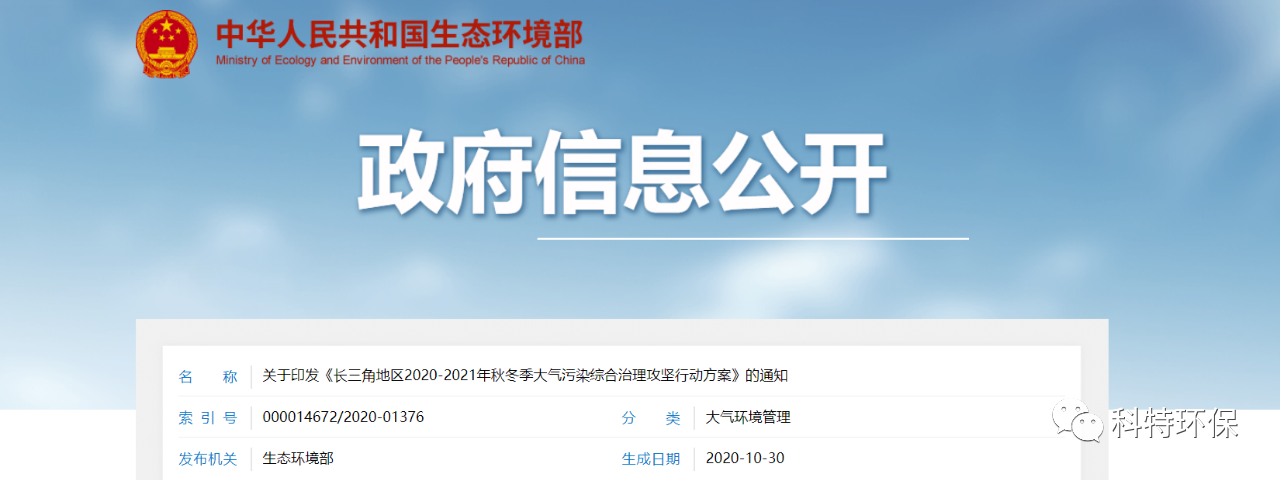 生態環境部、國家發展和改革委員會、工業和信息化部等10部門與上海、江蘇、浙江、安徽等4?。ㄊ校┤嗣裾摵嫌“l《長三角地區2020-2021年秋冬季大氣污染綜合治理攻堅行動方案》(以下簡稱《行動方案》)